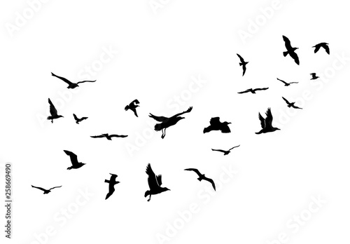 A Flock of Flying Birds. Vector Illustration. Isolated On White Background.