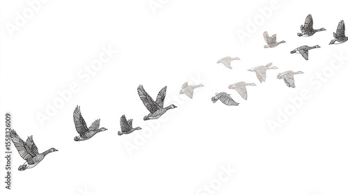 A flock of geese in flight