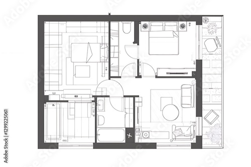 a floor map of a house with bedrooms, kitchen, living room, bathrooms, balconies and other house corners.