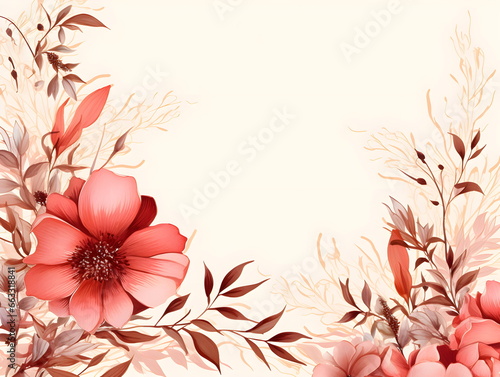 a floral background with pink flowers and green leaves. Abstract Pink foliage background with negative space for copy.