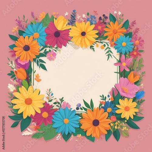 A Floral Frame of Vibrant Blooms Enclosing an Empty Space