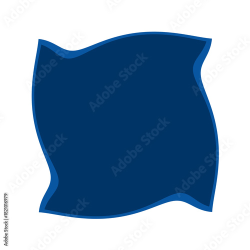 A flowing dark blue abstract banner shape with a lighter blue outline