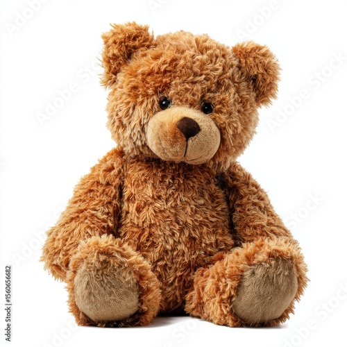 A fluffy brown teddy bear toy sitting on a white background isolated on white background