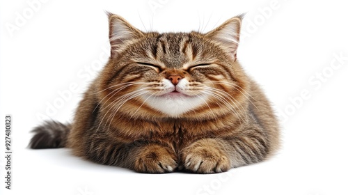 A fluffy cat with a joyful expression relaxes peacefully, enjoying the moment