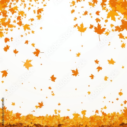 A flurry of vibrant orange leaves falling gently against a clean white background, evoking the feeling of autumn.