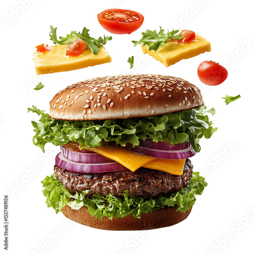 A Flying Burger Bun with Lettuce Isolated on Transparent Background