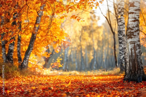A forest with trees in autumn foliage, showcasing a scenic and serene atmosphere.