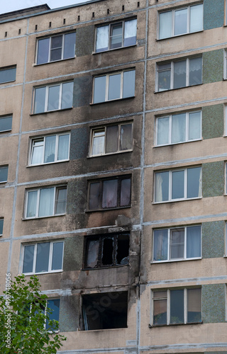A fragment of the wall of an apartment building after a fire. Saint Petersburg