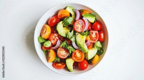 A fresh avocado salad with cherry tomatoes, red onion, and a squeeze of lime