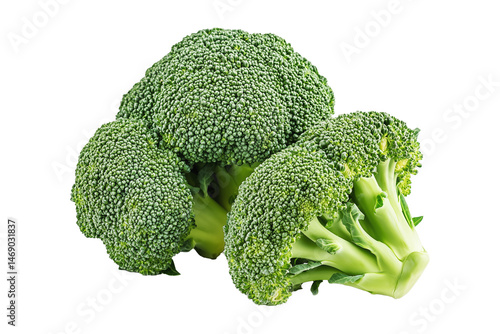 A fresh green broccoli floret with detailed texture isolated on white transparent background. Concept of healthy eating, organic food, and vegetarian diet