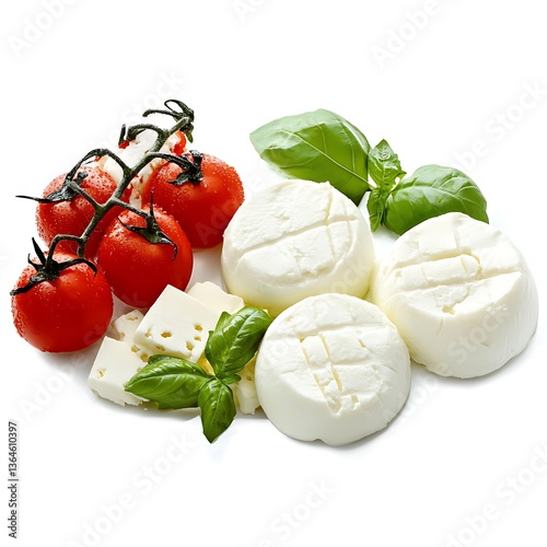A fresh Italian appetizer of mozzarella, red tomatoes, and green basil on a white plate