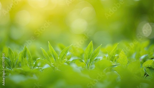 A fresh spring green garden foliage background with blurred bokeh. 2