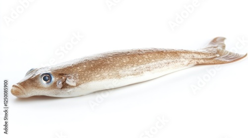 A fresh squid placed on a clean white background, perfect for product photography with ample room for branding or promotional text.