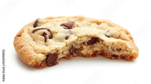 A freshly baked chocolate chip cookie with a bite taken out, showcasing its gooey chocolate and soft texture