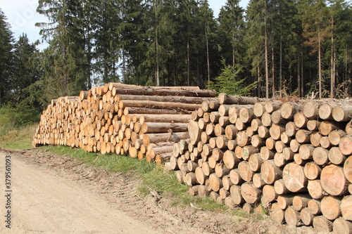 a freshly felled wooden pile in the forest