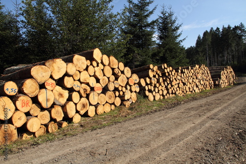 a freshly felled wooden pile in the forest
