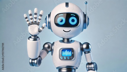 A friendly 3d robot character waving to the camera. 3D Rendering