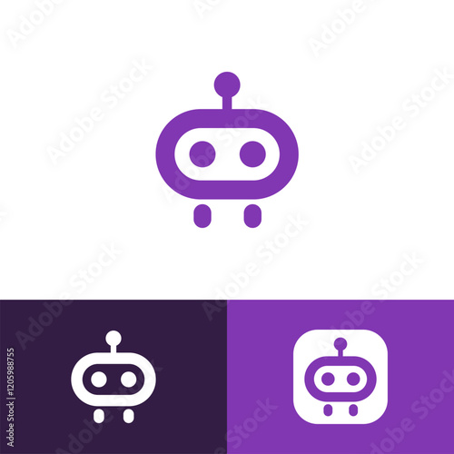 A friendly and minimalist robot logo, conveying intelligence, innovation, technology. simple design and vibrant purple color make it memorable and versatile across various platforms and applications