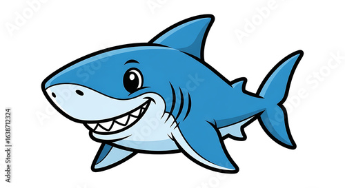A friendly blue cartoon shark character smiling with a big toothy grin.