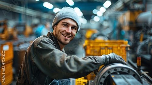 a friendly smiling factory worker