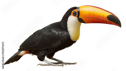 A full view of a toucan isolated on transparent background, real photo, stock photography, high resolution