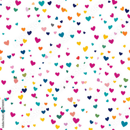 A fun confetti-like heart pattern, where tiny hearts are scattered in different colors on a white background, creating a joyful and celebratory effect. Great for kids' party supplies