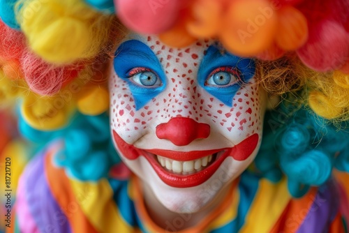 A funny clown with colorful makeup and a big smile brings entertainment and joy to the party.
