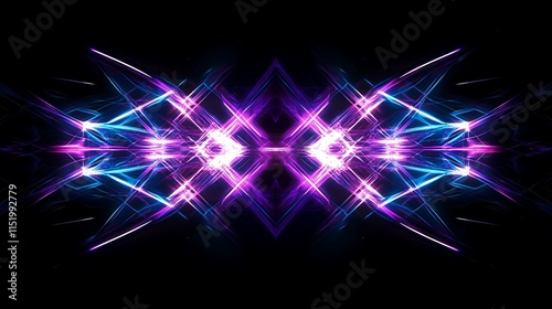 A futuristic abstract design with intersecting blue and violet neon laser lines, illuminating a dark background with high-tech sophistication and precision.