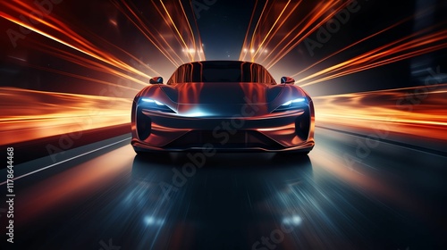 A futuristic car surged forward with dynamic light trails, showcasing speed and innovation. The sharp design and advanced technology embody modern automotive excellence.