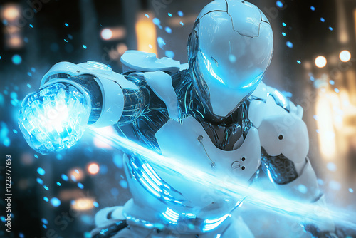 A futuristic cyberpunk robot with a sleek, high-tech design, glowing neon accents, and intricate mechanical details.