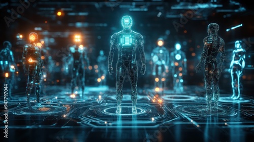 A Futuristic Cyborg Standing on a Circuit Board Platform