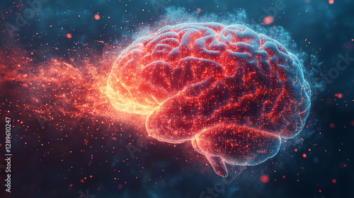 a futuristic digital artwork featuring a glowing brain network, symbolizing AI, neuroscience, and mind power. This high-tech design represents intelligence, connectivity, and innovation.