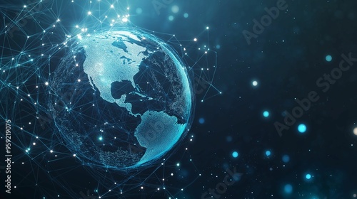 A futuristic digital rendering of the Earth surrounded by glowing network connections.