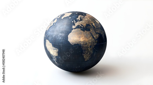 A futuristic globe displayed against a white background. World illustration on a white background. globe, environmental responsibility. Fantasy relistic model of Earth sphere