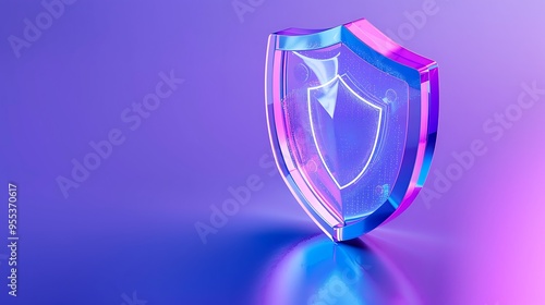 A futuristic, glowing 3D shield icon highlighting security and protection concepts in a dynamic digital environment with vibrant colors.