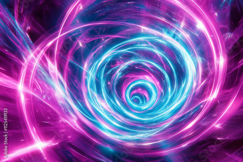 A futuristic, glowing tunnel filled with bright neon lights in turquoise and fuchsia, radiating a dynamic, surreal energy.