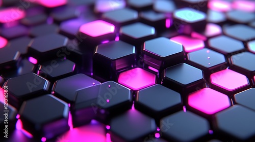 A futuristic grid pattern illuminated by soft neon glows and contrasting shadows.