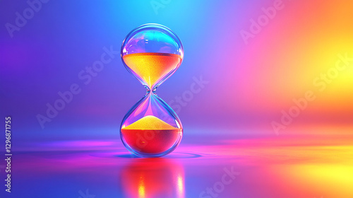A futuristic hourglass with glowing sand against a bright white background, symbolizing time, change, and the passage of moments, showcasing a sleek and modern design