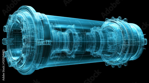 A futuristic industrial pipeline technology wireframe symbolizing energy systems, illuminated by modern daylight with a bright, simple tone. The image has a blurred background and plain caption space
