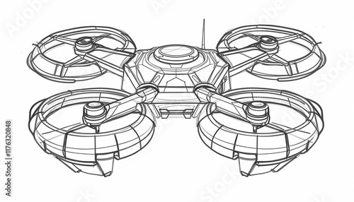 A futuristic quadcopter drone sketch showcasing advanced design. Ideal for surveillance, delivery, or aerial photography applications.