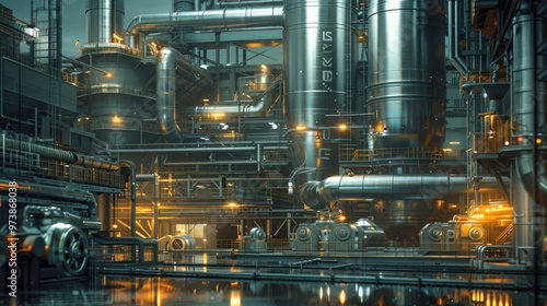 A futuristic recycled carbon energy plant in an industrial zone, featuring advanced carbon capture technology and bright artificial lighting, incredibly detailed and intricate.