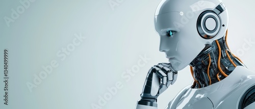 A futuristic robot deep in thought, showcasing advanced technology and design elements with a sleek, metallic finish and illuminated circuitry.