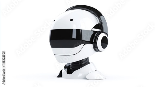 A futuristic robot head with sleek design, featuring a visor and headphones, symbolizing technology and innovation.