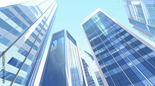 A futuristic skyscraper with a sleek, reflective glass facade rising against a clear blue sky, showcasing modern urban architecture and advanced design