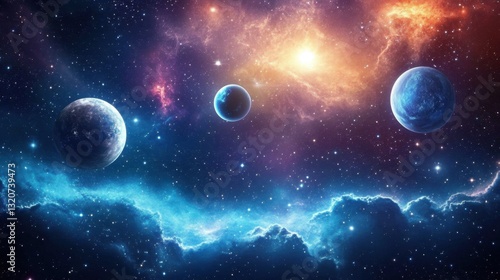A futuristic space and technology-inspired background with cosmic digital effects