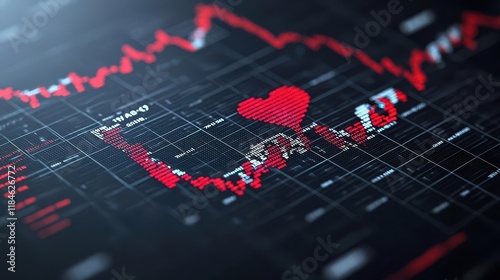 A futuristic trading platform with heartshaped holographic stock charts, Valentines tech, financial innovation, love concept