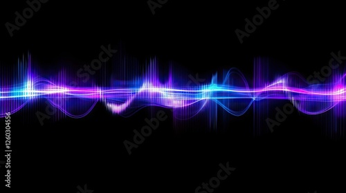 A futuristic visualization of digital sound waves in glowing neon blue and purple hues.