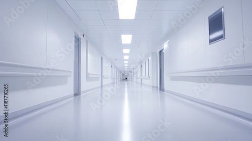 A futuristic white hallway with a glowing light at the end,white hallway with a bright light at the end,Empty white futuristic corridor with a glowing light in the distance