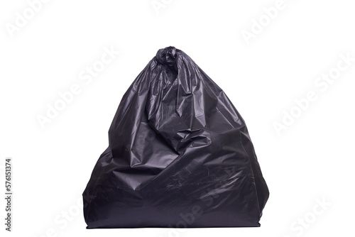 A garbage black bag that tied the mouth nicely. black garbage bag isolated on white background, clipping paths