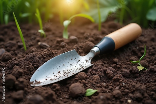 A Garden Trowel Sitting in the Dirt Next to a Plant - Generative AI